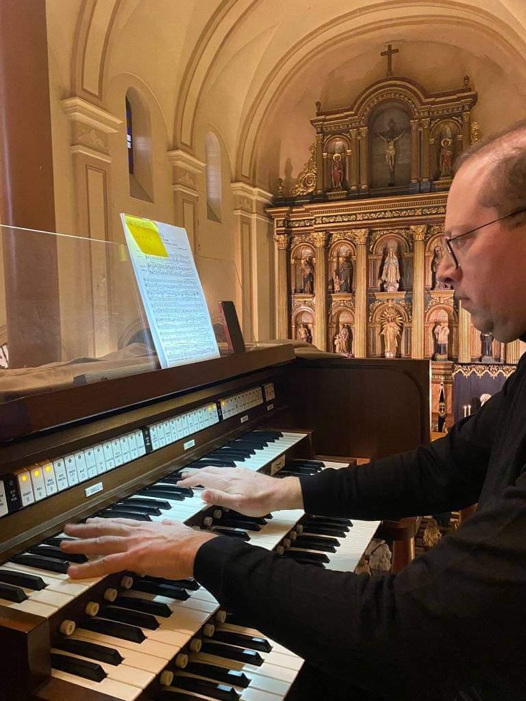 Organista litúrgico. Ha tomado lecciones de órgano del profesor Daniel Martín Salvador (organista titular de la Basílica Pontificia de San Miguel de Madrid), y de Carlos Arturo Guerra y Lucie Žáková (organistas de la Catedral de Cuenca).